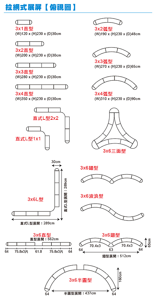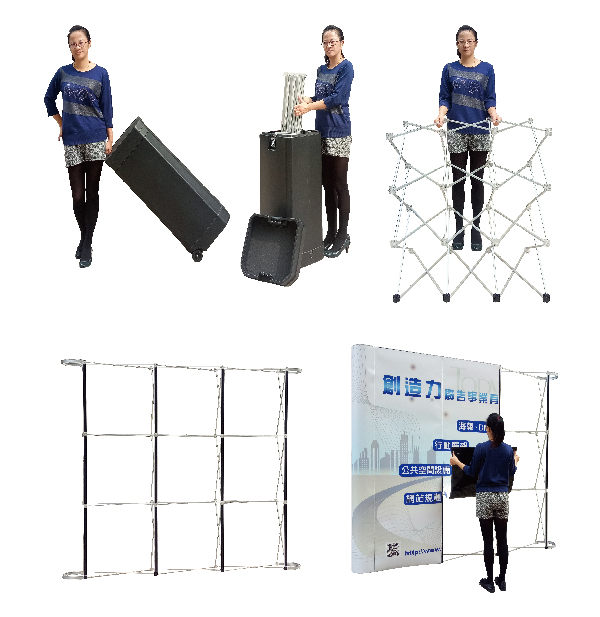 【行動展示架】 大型展示架 (膠板膠條) » 拉網式展屏 (弧式3x3)