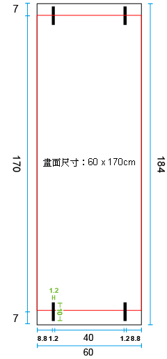 - 畫面尺寸:w60cm x h170cm (雙面x2)(不含畫面印刷價格)。